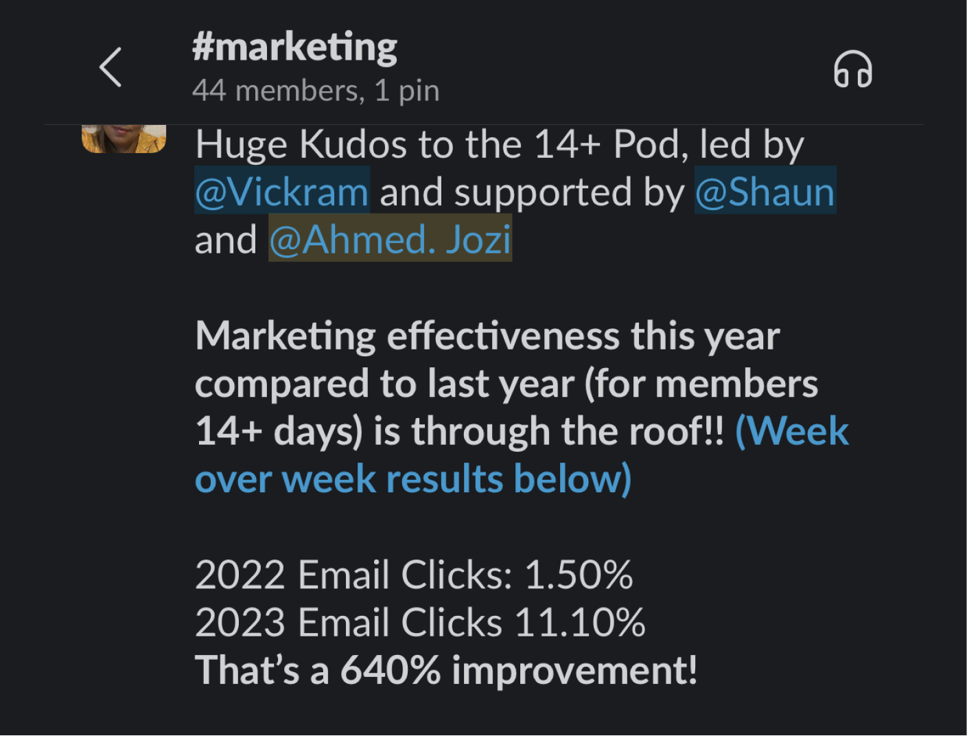 Outcome: 640% improvement within one year.