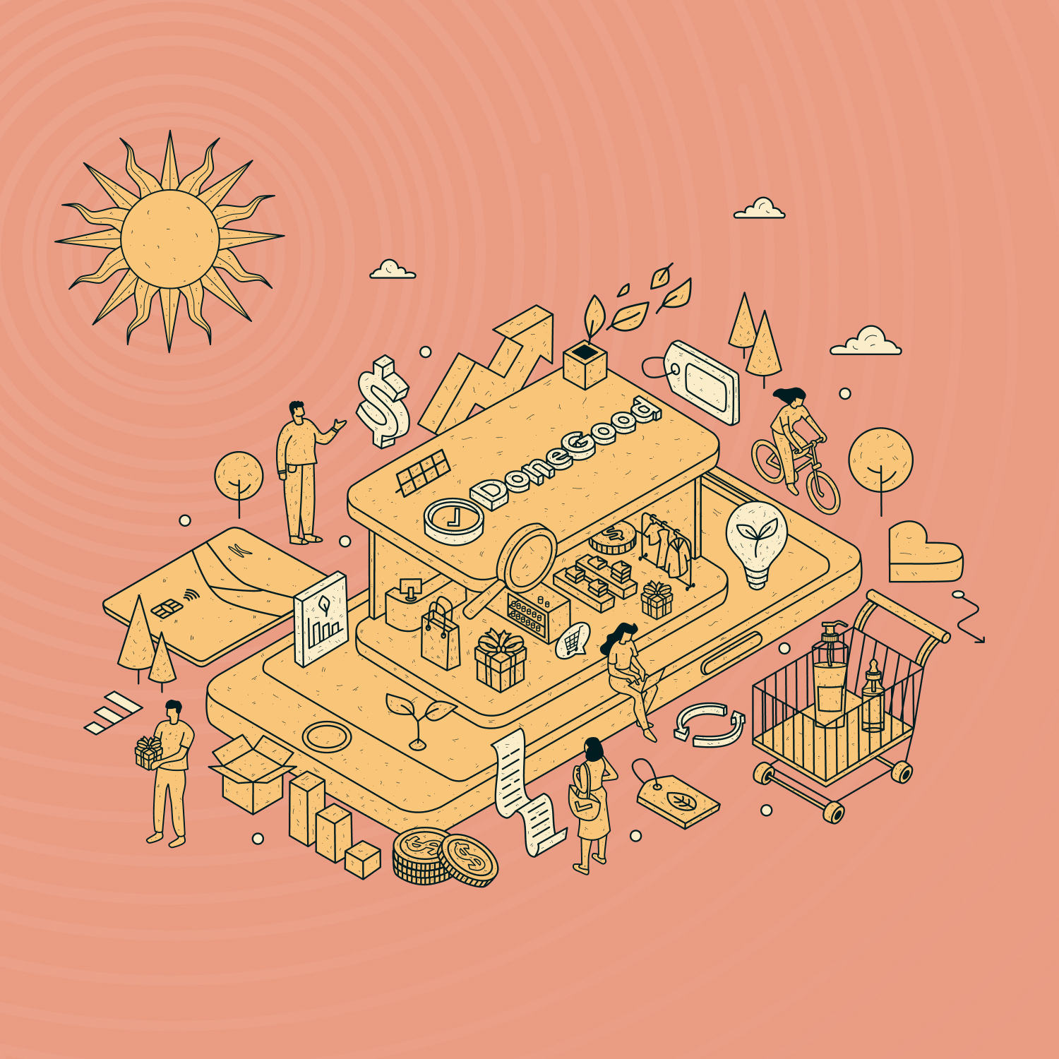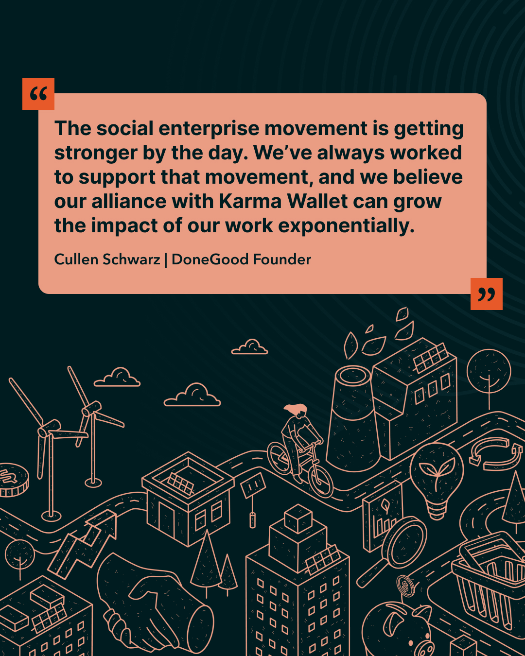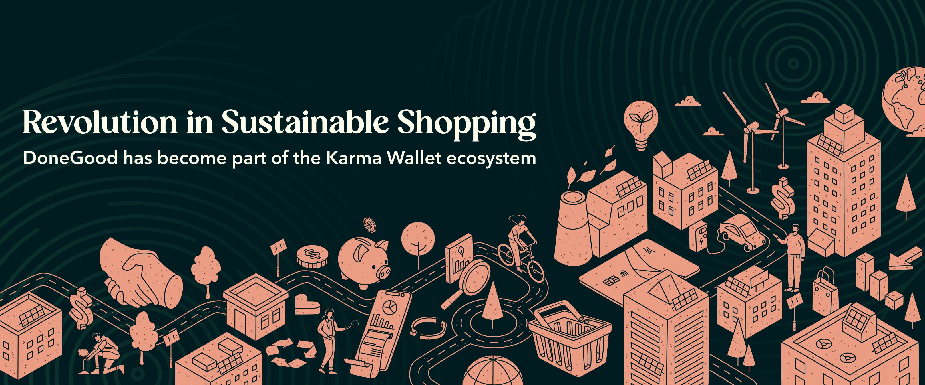 As part of my role at Karma Wallet, I collaborated with the marketing team and spearheaded the visual rebranding initiative for DoneGood, a newly acquired company. I designed graphics for the announcement of Karma Wallet’s acquisition of DoneGood. To highlight DoneGood’s mission of promoting sustainability, I created a visual representation of a city that thrives on eco-friendly practices. This cityscape served as a metaphor for DoneGood’s vision of a greener planet.